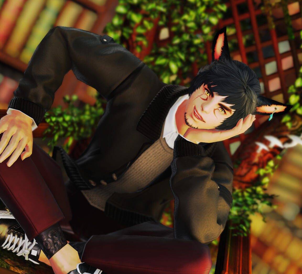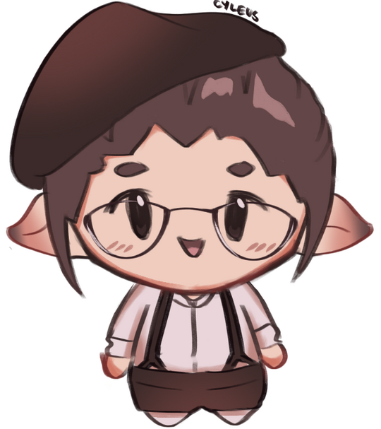 “A lover of word play, puns, silly pranks, and fancy coffee. Despite his small size, Chaon packs a gigantic head that rivals most ‘Tallafells’ as he likes to call them. He had a very unremarkable life was pretty reserved until he met the dark one, Truck-ku-”“Oh, that’s the wrong biography. Give me one second…” Chaon throws the book onto the floor before reaching onto the bookshelf. It leans towards him slightly then crashes on top of him, causing books to fly into the air. Chaon pops out of the pile of books like a sprout, exclaiming “FOUND IT! Now where was I?” Proudly holding up a hardback purple leather bounded book, titled 'Chaon Theory'. He heads to the first chapter while he stands in the rubble of books. “Here it is! Now, let me start over.”“Chaon Eon is the youngest son of Dai’lo Eon and Chi’sin Eon. He grew up in the nation of Ul’Dah until he moved to New Gridania, where he met Penelope Lane introducing him to the world of bards and bands. It wasn’t long after when Chaon picked up his first instrument, the piano, in hopes of making music. He has picked up several other instruments and while he isn’t as musically inclined as his fellow Drama Club peers, he still enjoys supporting everyone and watching them succeed.”