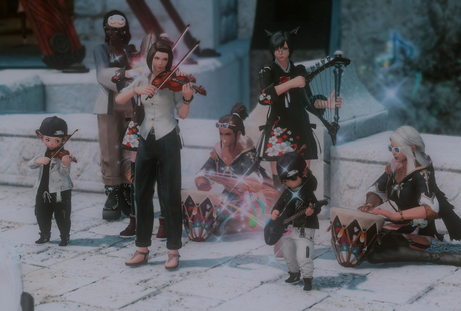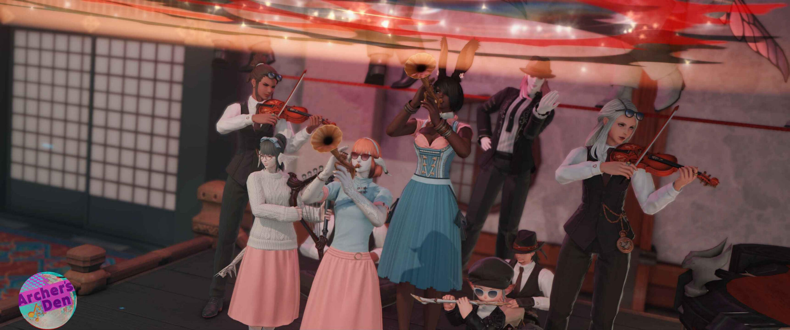 ♪♫♪ After years of playing music with smaller groups and duets in FFXIV as well as multiboxing, Penelope Lane of <Coeurl> founded The Drama Club in October of 2022 with the intention of being a home for the many solo bard friends she’d made since being on Crystal.
