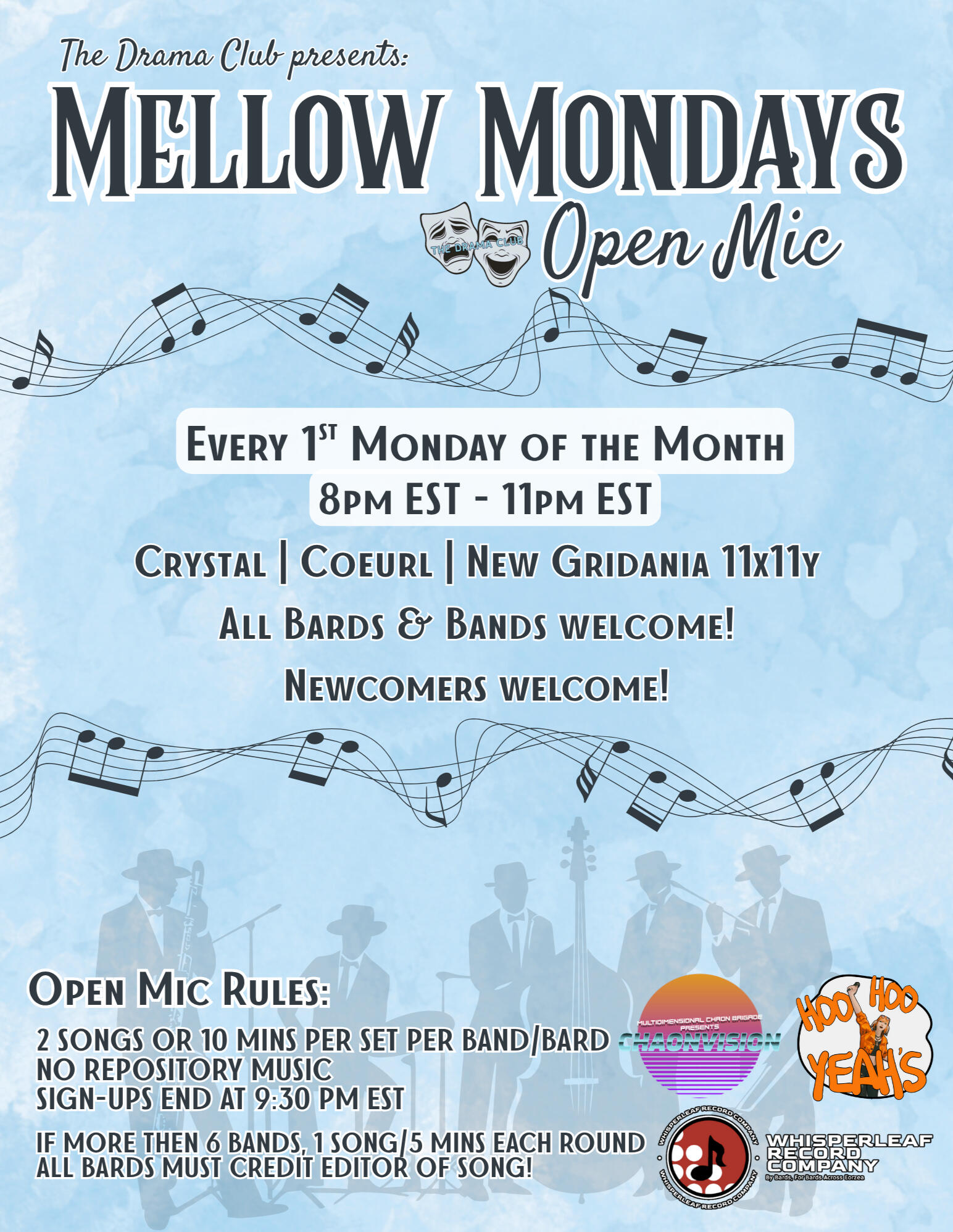 ♪♫♪ The mission of The Drama Club is to provide a fun raid-like atmosphere within ensemble mode with real people who are allowed to come and go as they please. We provide all members a unique experience as members of a band instead of playing alone.